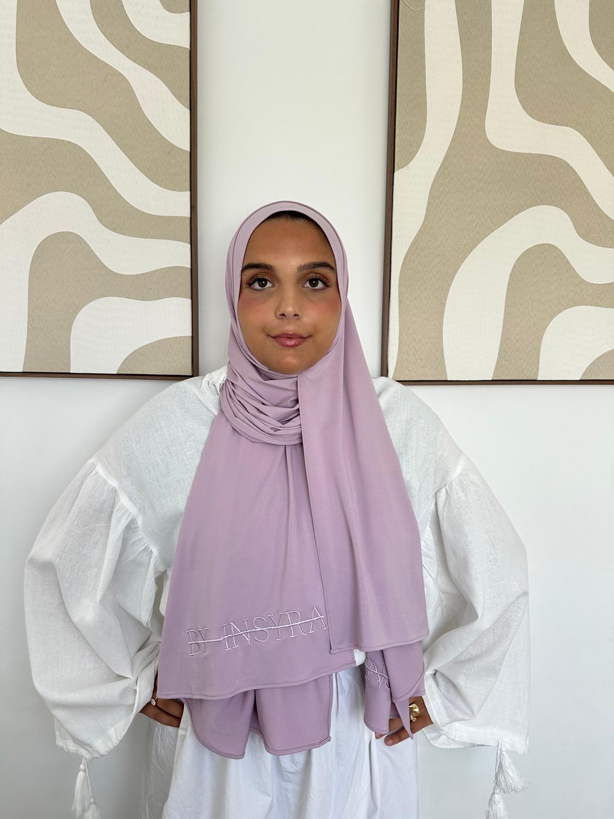 Élégant et raffiné, ce voile brodé est conçu dans un jersey liquide premium fluide, doux et opaque.