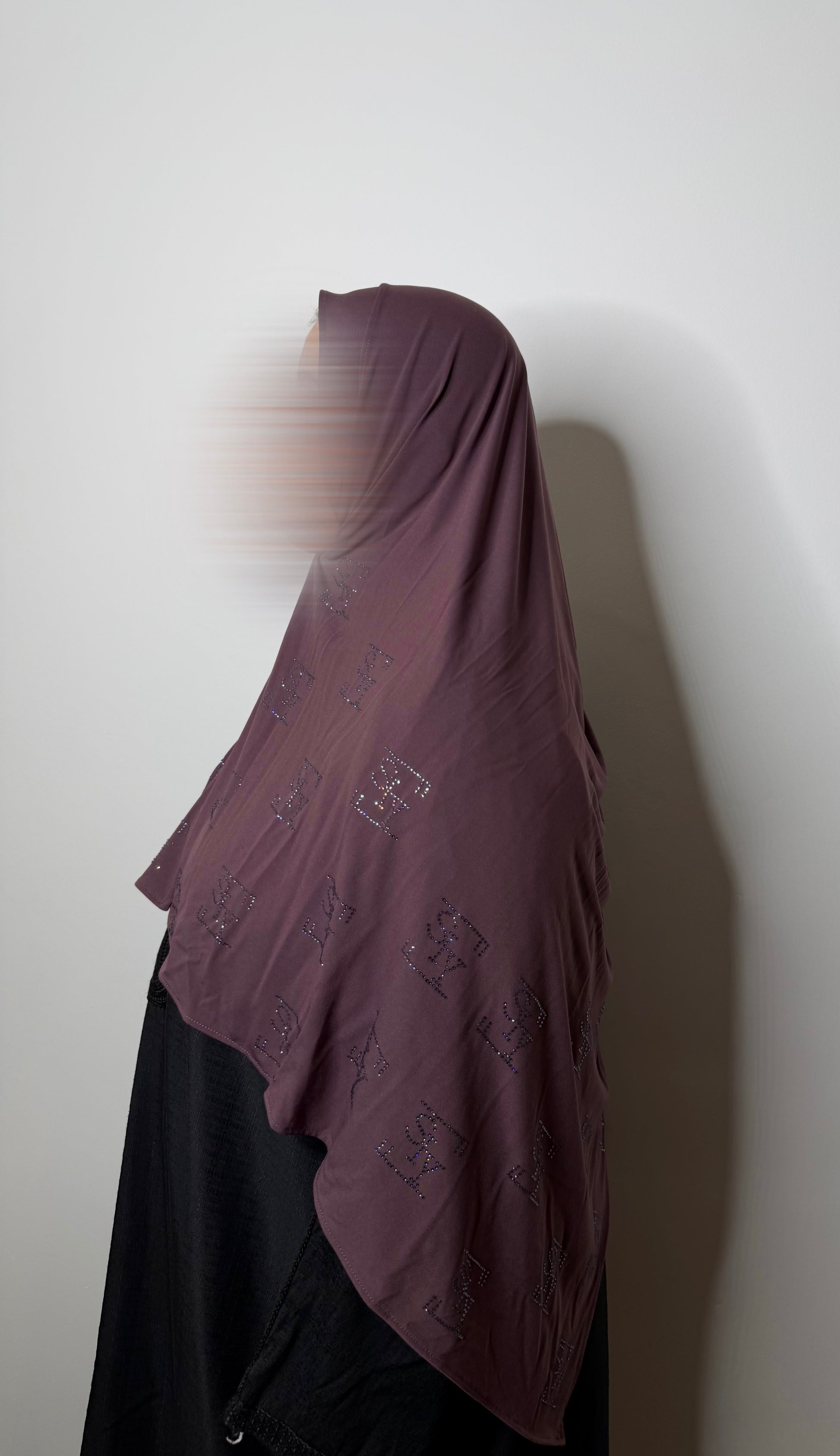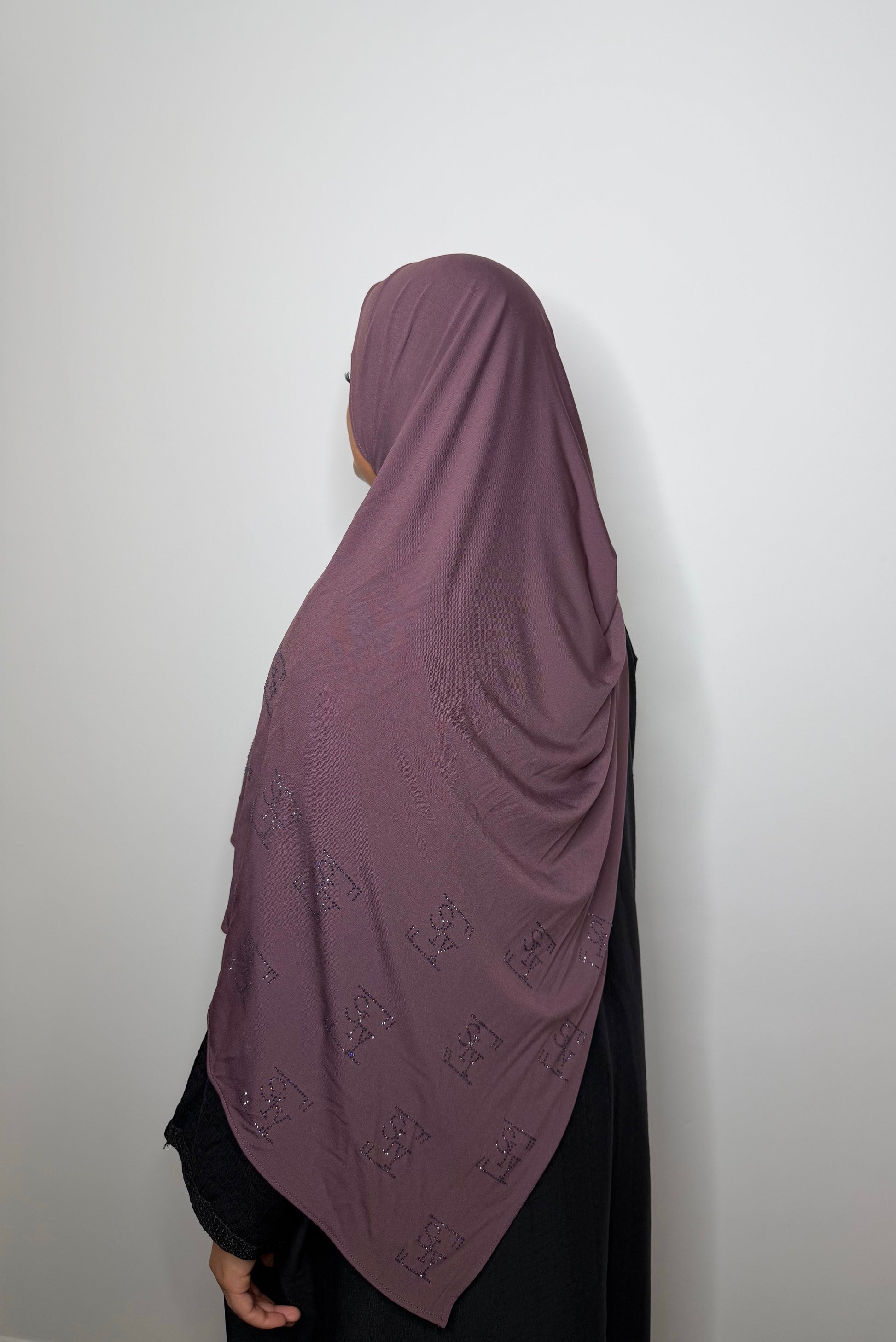 A premium jersey hijab with delicate crystal embellishments, combining comfort, fluidity, and refined elegance.