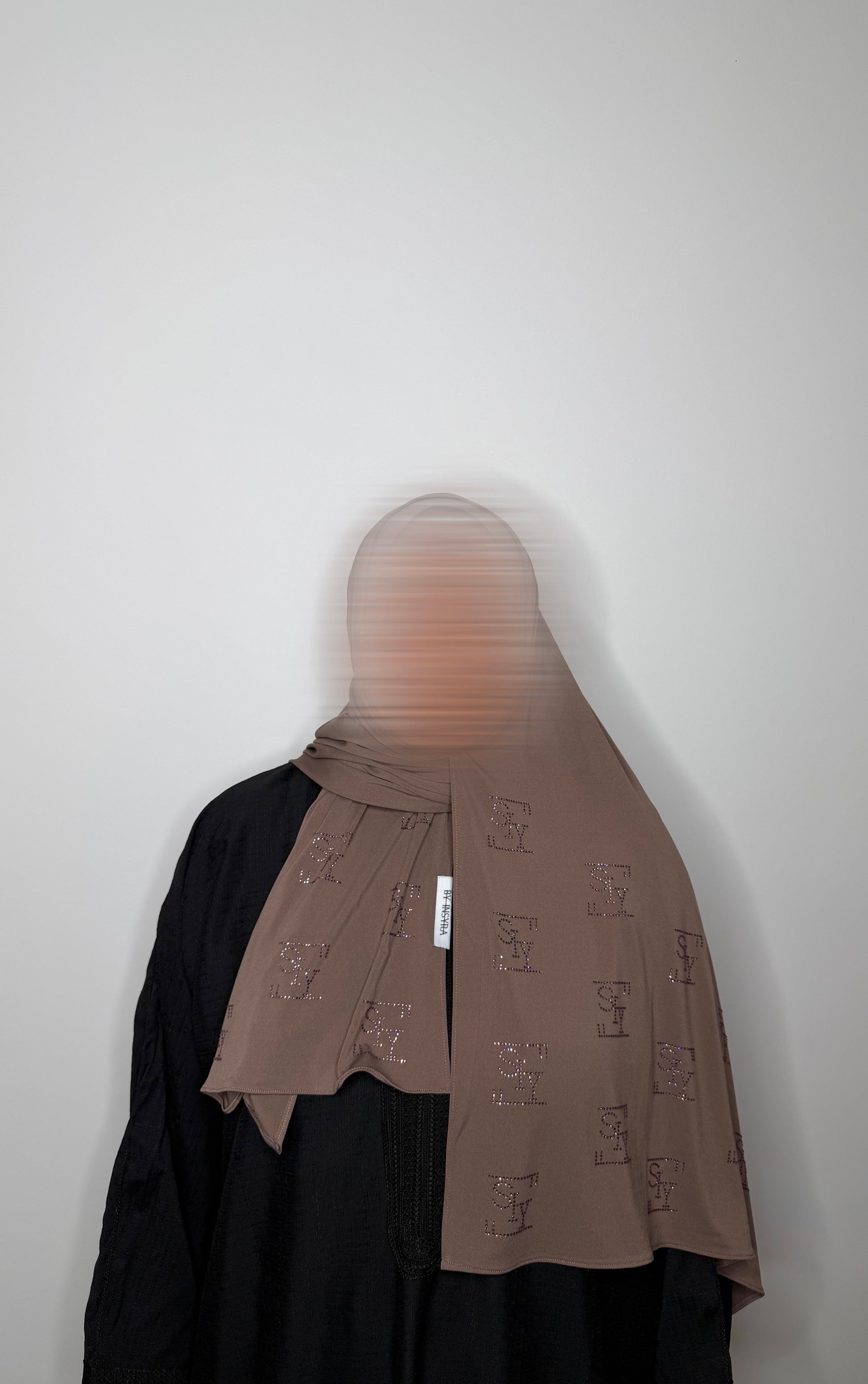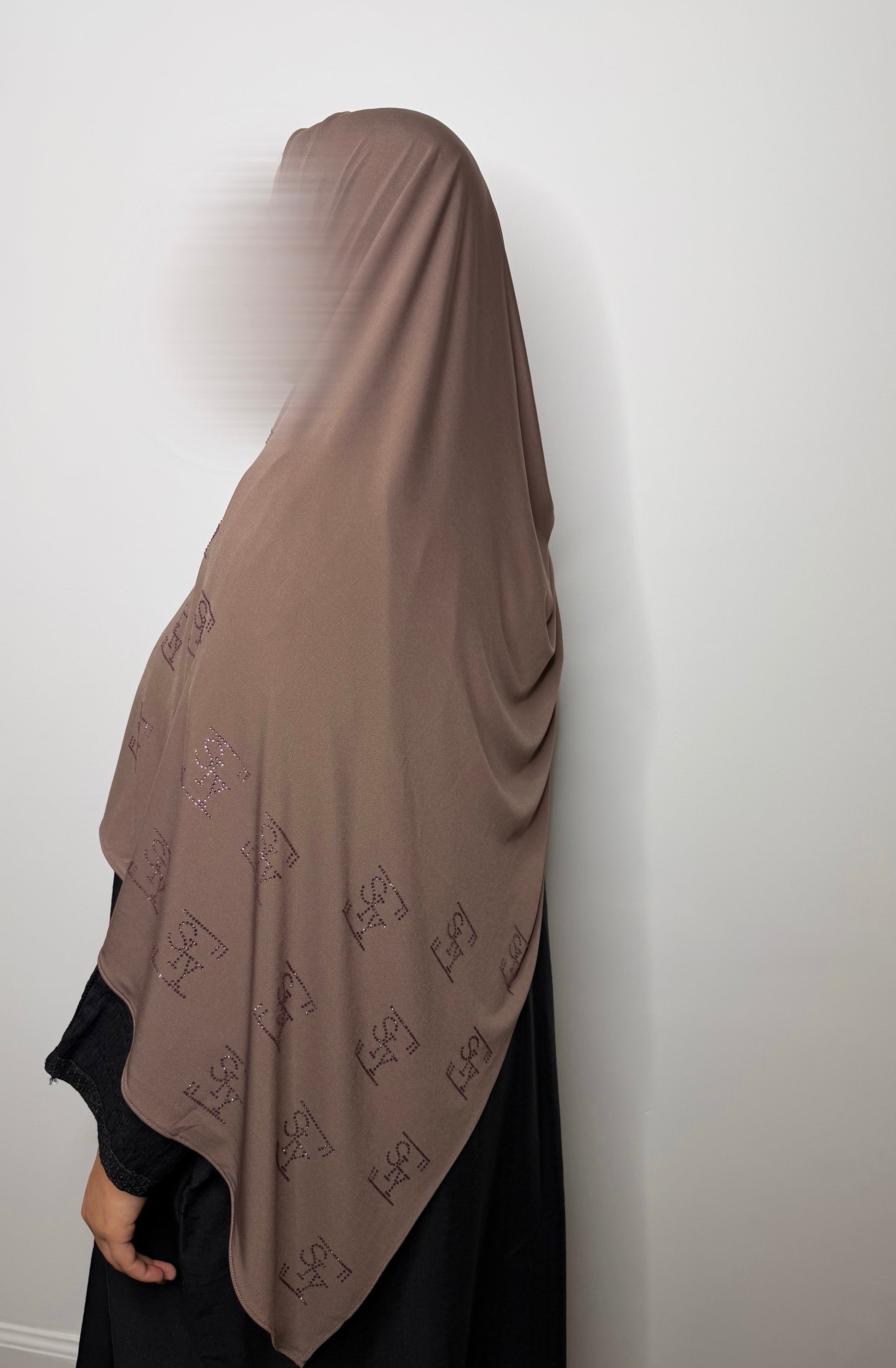 A premium jersey hijab with delicate crystal embellishments, combining comfort, fluidity, and refined elegance.